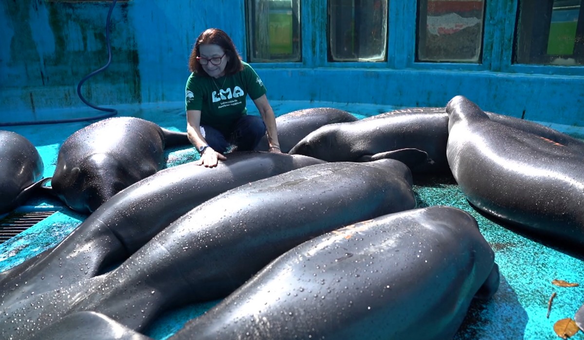 Pesquisadora Vera da Silva, do Inpa, examina peixes-boi em Manaus
